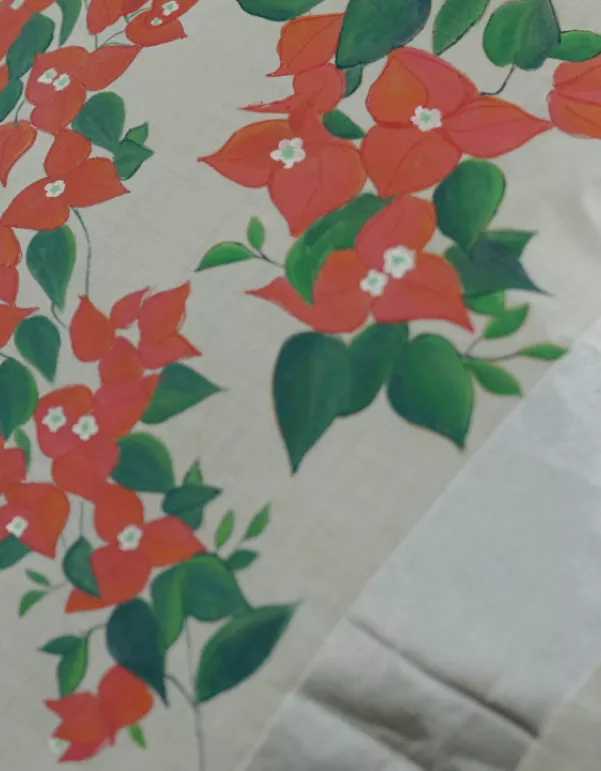 - Features hand-painted bougainvillea florals