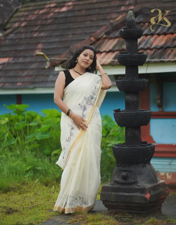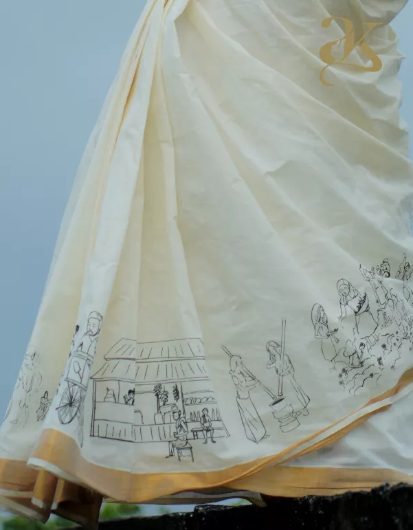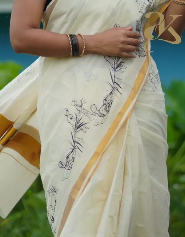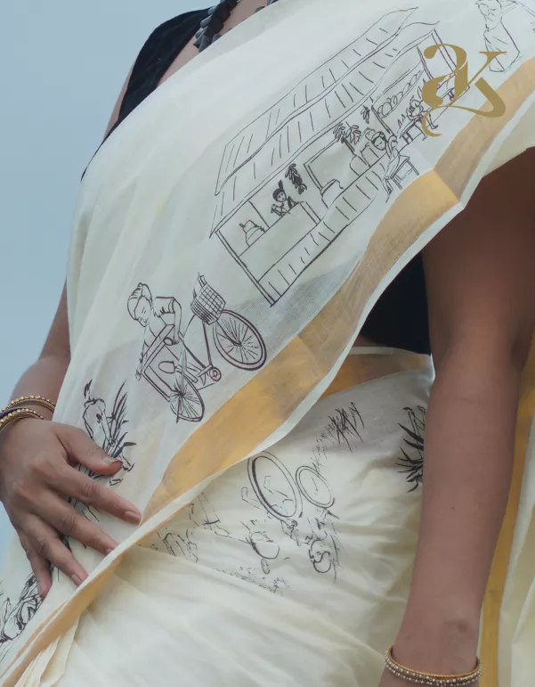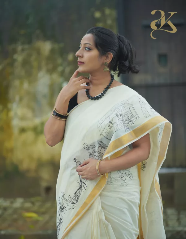 Evoke timeless charm with our Memories Block Printed Kerala Saree, crafted in soft viscose cotton and accentuated with a subtle gold border. Each block print captures nostalgia and artistry, making it a perfect choice for both everyday elegance and special occasions.
