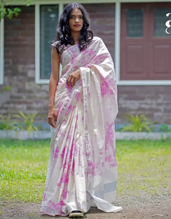 Make a style statement with this Tie-Dye Kerala Saree featuring a subtle silver border. Crafted in soft and flowy viscose cotton, each saree is unique — with naturally formed tie-dye patterns that add effortless charm and individuality to your look.